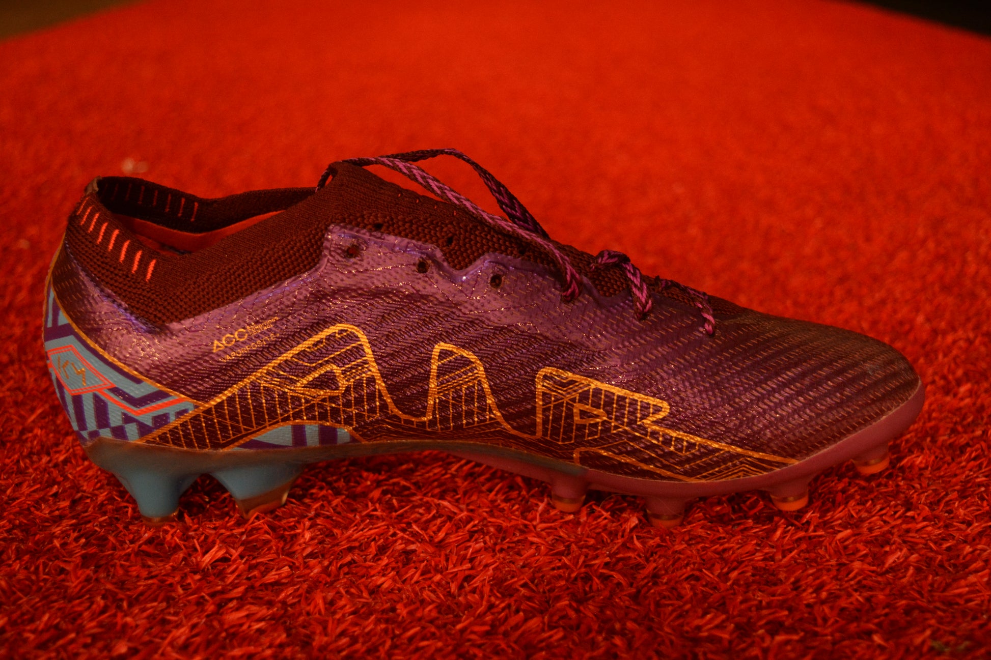 An internal speed cage keeps the foot secured, while roubd studs enhance multidirectional traction.